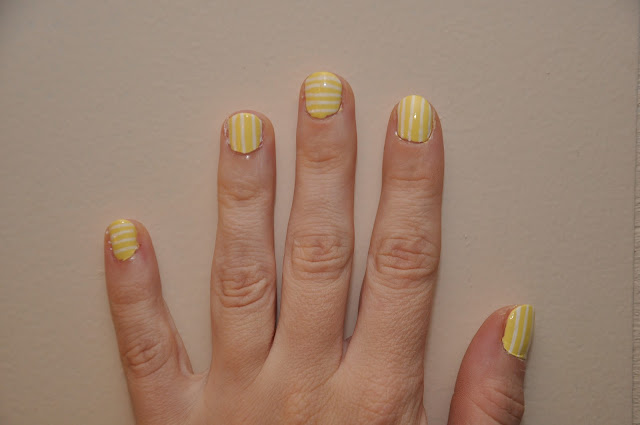 I started and ended the month with two nails dos. I think I like the yellow and white nails better than yesterday's fall paint job.
